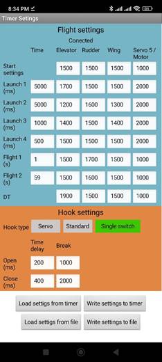 - When you power up the timer it will move all servos as Start settings and will open the break servo (Hook servo)